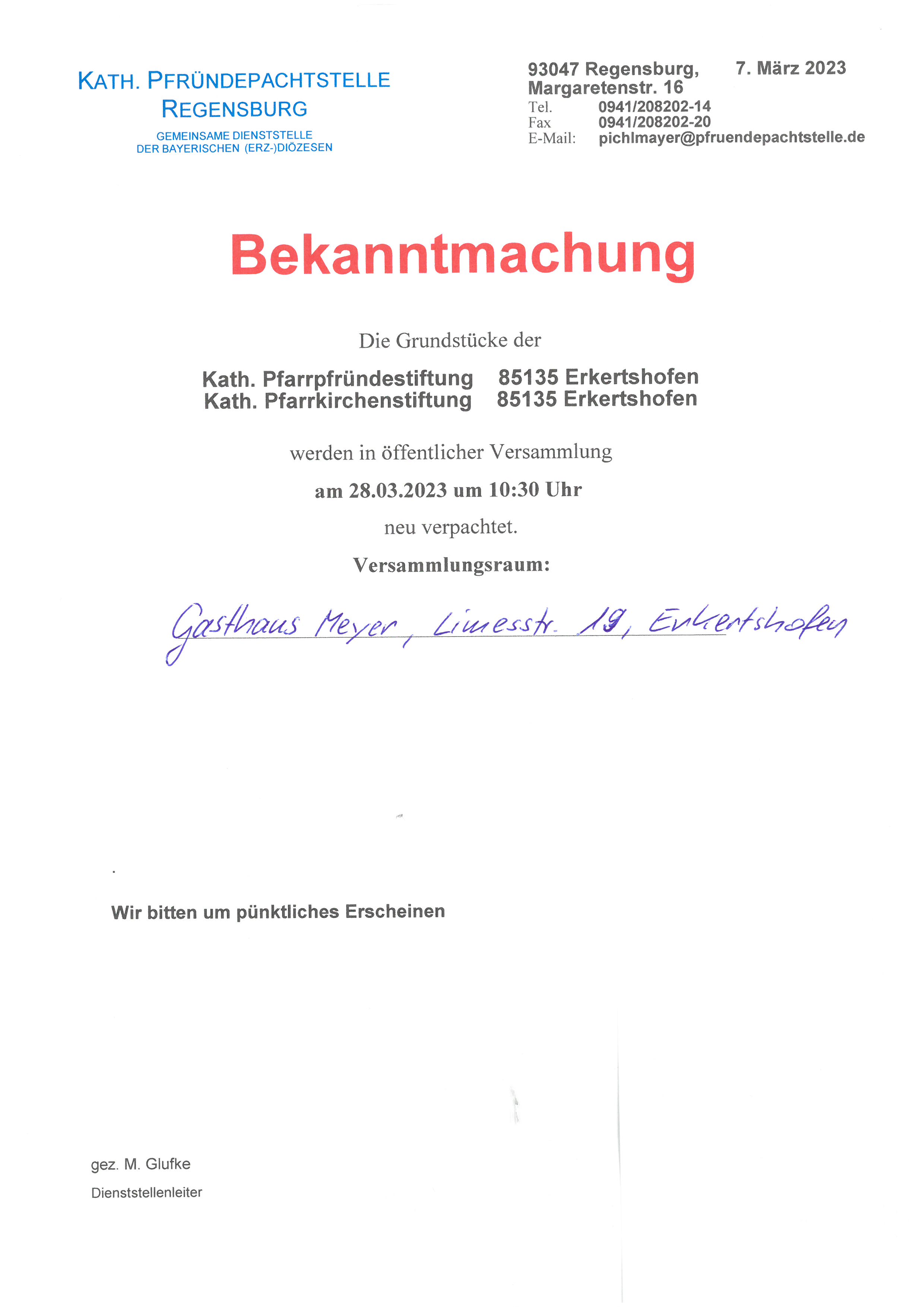 Hl. Messe f. + Ehefrau u. Mutter Marianne Flieger; z. G. Hl. Messe f. deren + Elt. u. Bruder Josef |