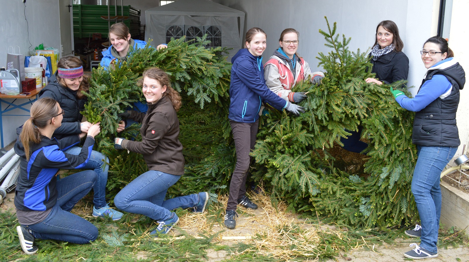 Bereits am Vortag wurden von den Mitgliedern der Katholischen Landjugend die Kränze für den Maibaum gebunden.