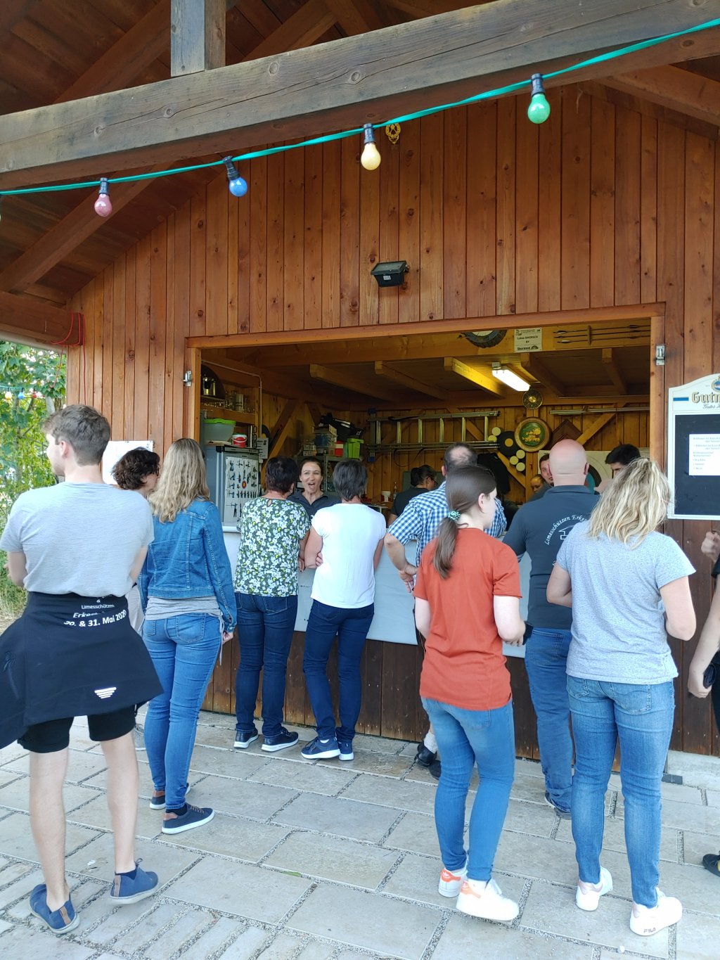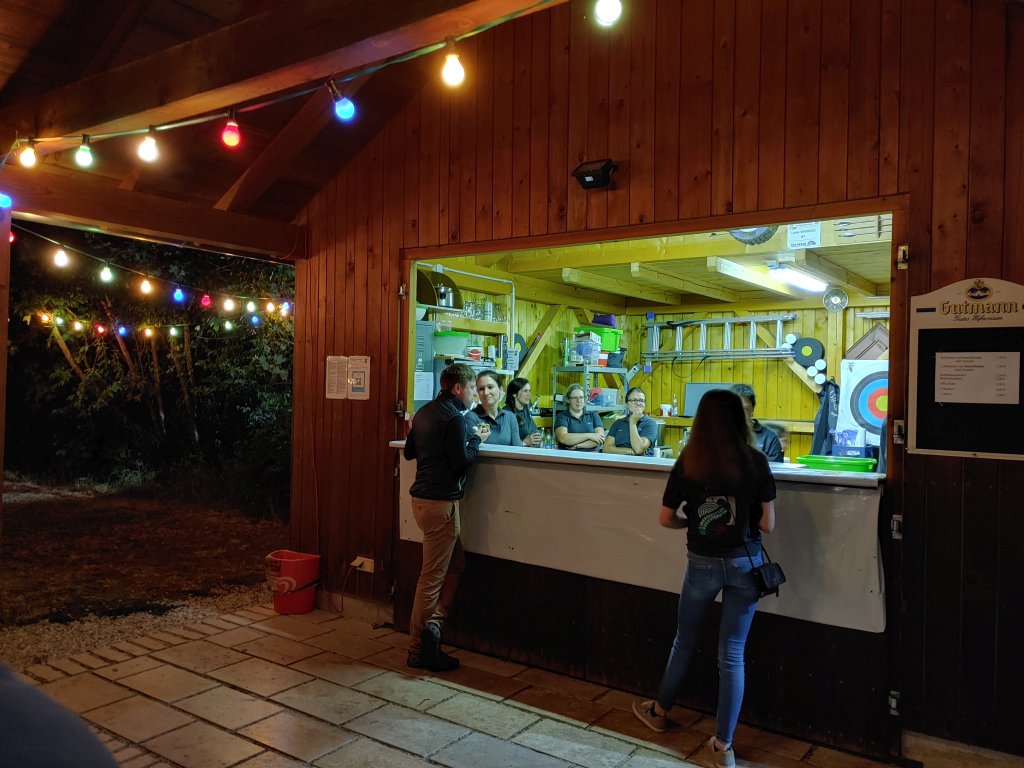 Für das leibliche Wohl war bestens gesorgt, Hähnchen und Rollbraten vom Grill mit selbstgemachten Kartoffelsalat waren der Renner. So dass die zahlreichen Gäste ein paar gesellige Stunden bei gutem Essen und einem herrlich süffigen Bier am Bogenplatz verbringen konnten.