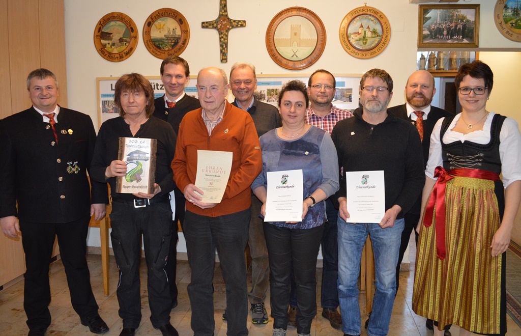Zahlreiche Ehrungen standen bei der Jahreshauptversammlung der Limesschützen im Mittelpunkt. Zu Beginn dankte der Schützenmeister Xaver Bauch für seine bereits 50-jährige Vereinszugehörigkeit und überreichte ihm eine Urkunde und Anstecknadel des Bayerischen Sportschützenbundes. Für 40 Jahre Vereinszugehörigkeit wurden Franz Bittl, Schirmherr Fritz Gutmann und Max Medl ausgezeichnet. Für die vielen Verdienste in und um den heimischen Schützenverein erhielten Claudia Spiegl, Tobias Jung und Günther Sihorsch aus den Händen des Ehrenbeauftragten des Vereins, Markus Nerb, die Silberne Vereinsnadel überreicht. Die Sportleiterin des Vereins, Monika Wegrampf, dankte im Anschluss Vereinswirt Rupert Bauernfeind für inzwischen 500 absolvierte Rundenwettkämpfe mit der Luftpistole. Rupert Bauernfeind ist Gründungsmitglied und seit Ende der 60-er Jahre aktiver Schütze. Mit seiner äußert positiven und kameradschaftlichen Einstellung trägt er seit knapp 50 Jahren als aktiver Schütze zum positiven Erscheinungsbild im heimischen Schützenverein bei.